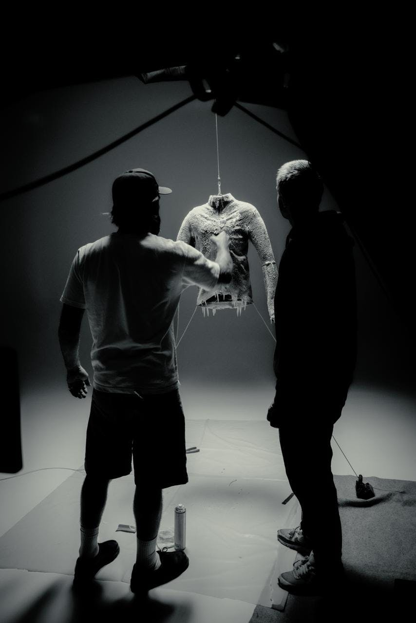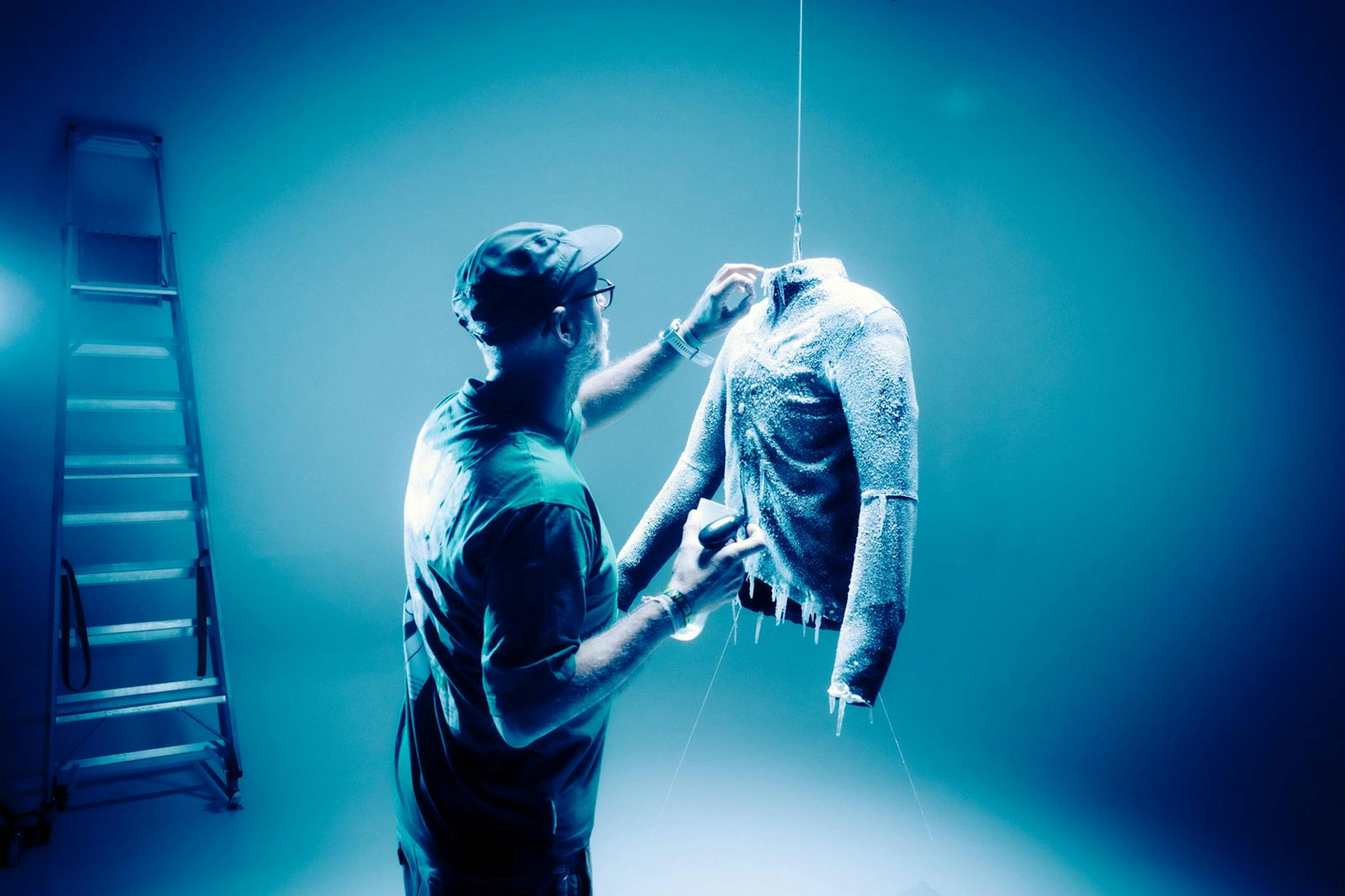 We did it for real. No VFX, no AI — everything was crafted around our jacket. A true display of expertise, bordering on cinematic craftsmanship, was brought to life by our set design team to give our story its full authenticity.